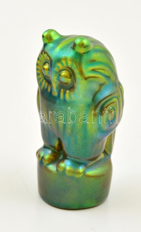 Zsolnay bagoly, eozin mázas, jelzett, hibátlan, m:8 cm