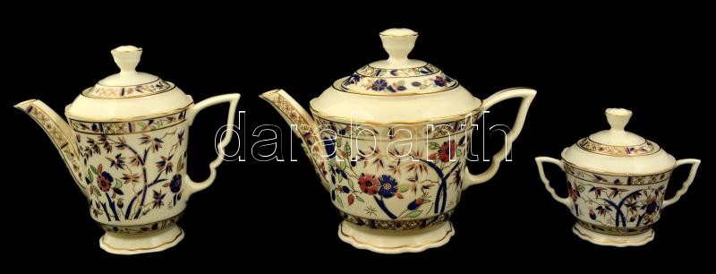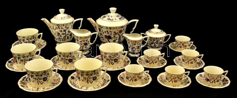 Zsolnay bambusz mintás mokkás és teás készlet, kézzel festett, jelzett, hibátlan, összesen: 17 db