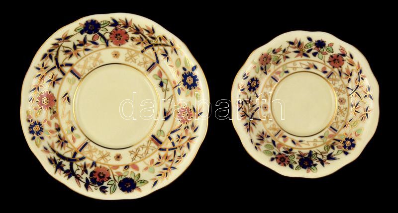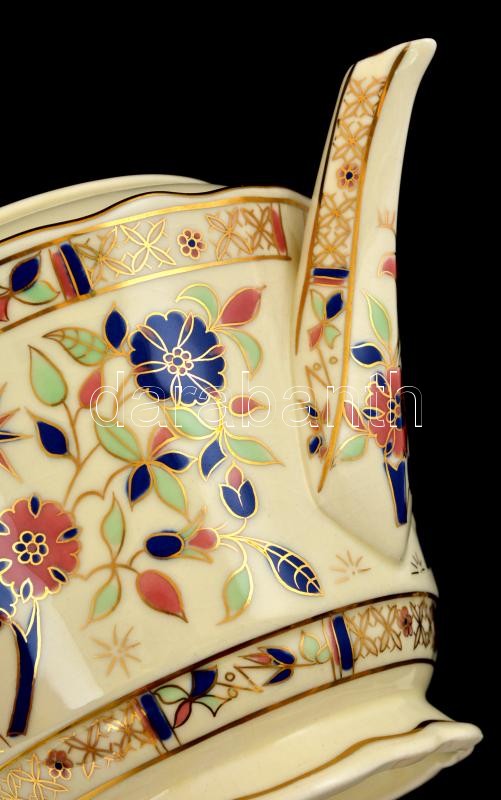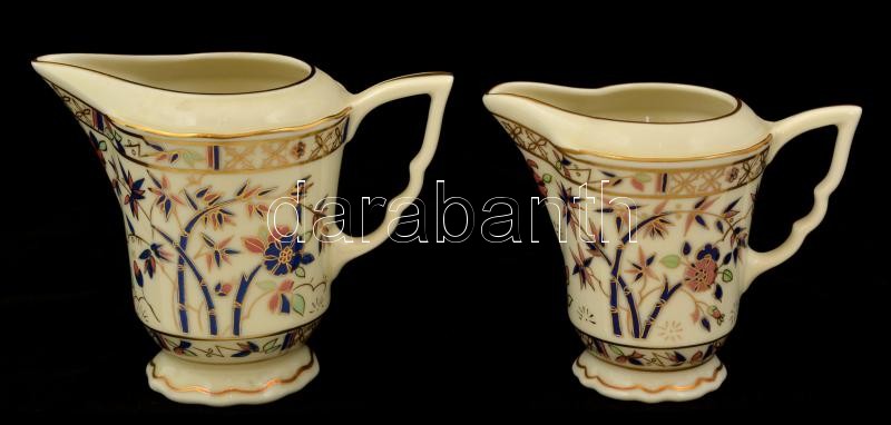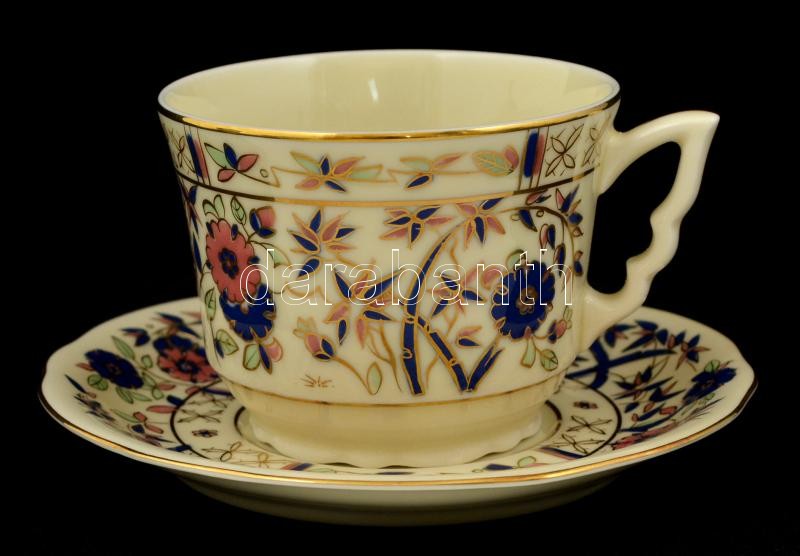 Zsolnay bambusz mintás mokkás és teás készlet, kézzel festett, jelzett...