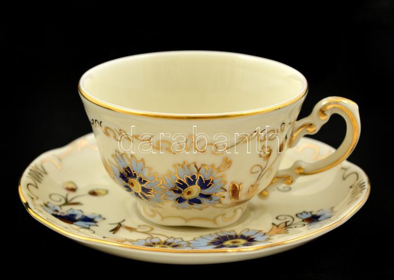 Zsolnay búzavirág mintás mokkás csésze és alj, kézzel festett, jelzett...