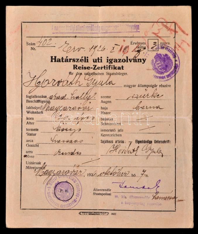 https://www.darabanth.com/en/299-Online-auction/299.0/Other-collectibles/Documents~17/1926-Hatarszeli-utiigazolvany-hatarkeruletbeli-lakosok-reszere-Osztrak-hatar-Passport-fo~II1600073