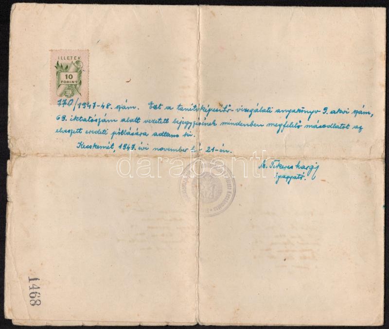https://www.darabanth.com/en/299-Online-auction/299.0/Other-collectibles/Documents~17/1946-Kossuth-cimeres-tanitoi-oklevel-plus-1940-a-Radioujsag-oklevele~II1566043