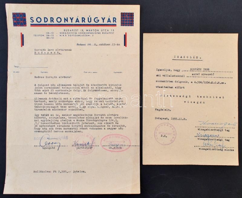 1955-1968 Sztahanovista, kiváló dolgozó és egyéb oklevelek, okmányok, ...