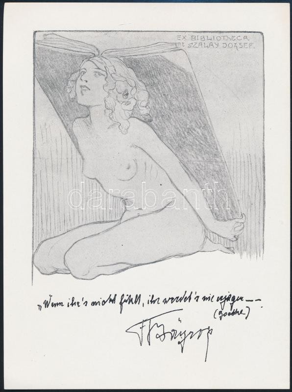 Franz von Bayros (1866-1924): Erotikus ex libris Szalay József. Klisé, papír, jelzett, 17×13 cm.