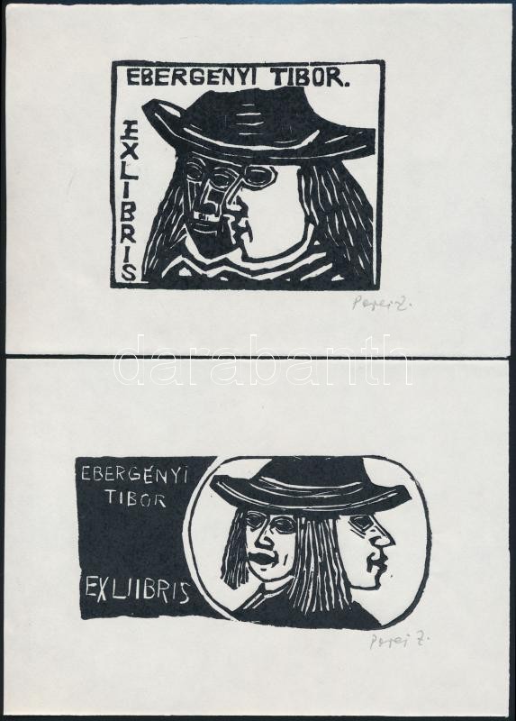 Perei Zoltán (1913-1992): Ex libris Ebergányi 2 db Linó, papír, jelzet...