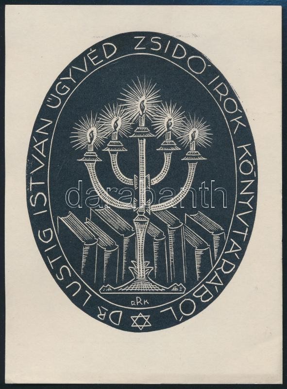 (Radványi) Román Károly (1900-1957): Ex libris Lustig István, Zsidó Ir...