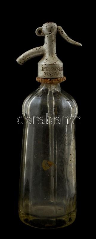 Hungária Szikvízüzem Veszprém, foltos szódásüveg, m:30 cm
