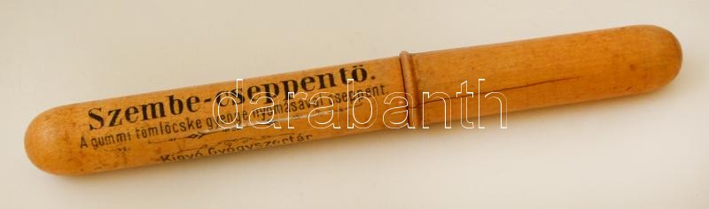 Szembe-cseppentő, Kígyó Gyógyszertár Budapest, fa tok, sérült, h: 17 cm