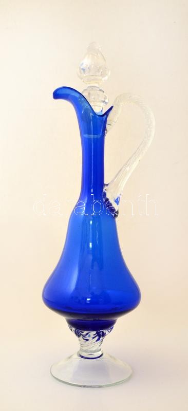 Dekoratív karaffa, formába öntött, anyagában színezett, dugóval, a dugón kis csorbával, m: 45,5 cm