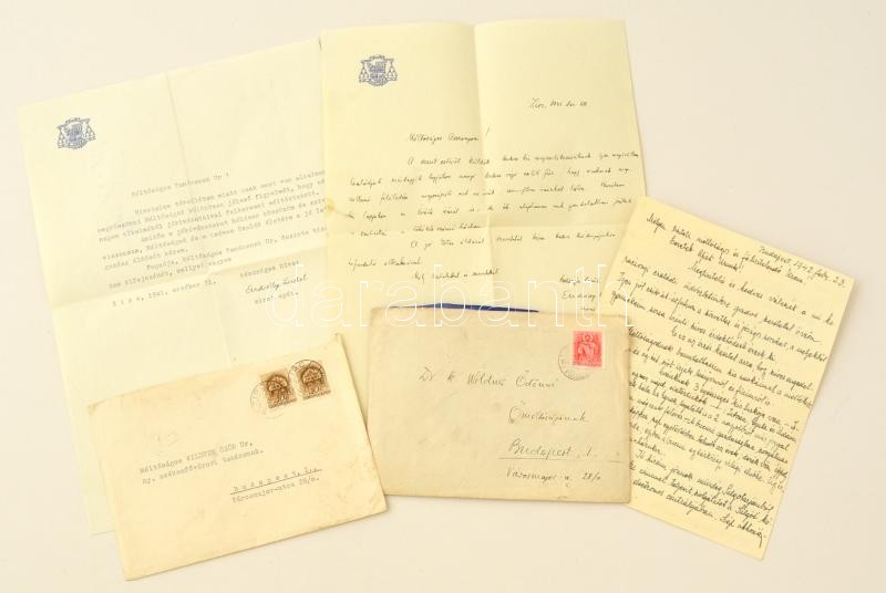 1941-1942 Endrédy Vendel (1895-1981) zirci apát 2 db köszönőlevele Wildner Ödön (1874-1944) műfordító, székesfehérvári tanácsnok és felesége, Szathmáry Karolina részére, mellette 1 db válaszlevél fogalmazványával, borítékban