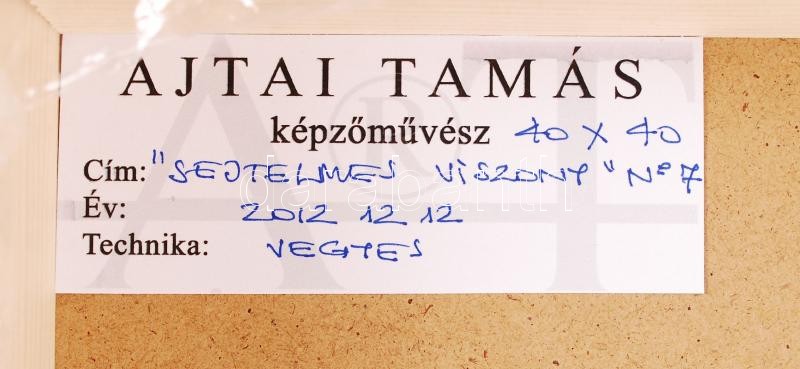 Ajtai Tamás (1952-): Sejtelmes viszony. Vegyes technika, farost, jelzett, 40×40 cm