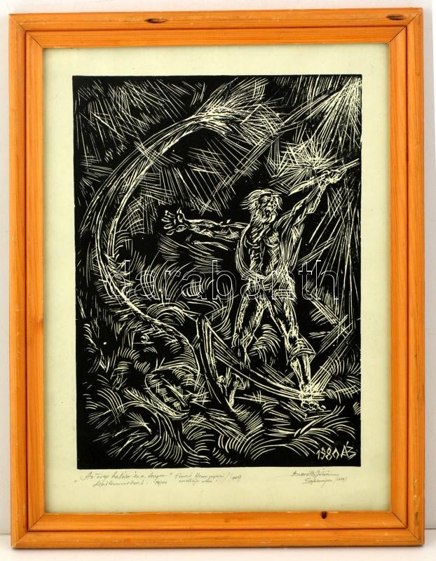 Baróthy Ádám (1945-): Az öreg halász és a tenger. Linómetszet, papír, ...