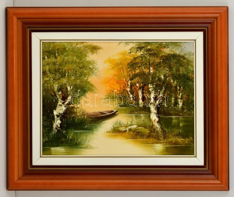 Bocsák Krisztina (1964- ): Ladik a Tisza-tónál, olaj, farost, jelzett,...
