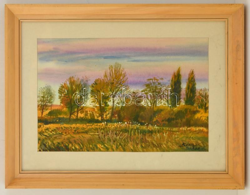 Bóka Dezső (1935-): Őszi táj. Akvarell, papír, jelzett, üvegezett keretben, 40×54 cm