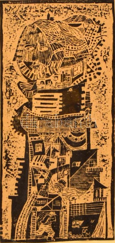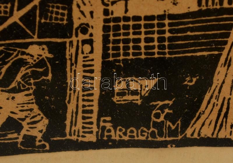 Faragó jelzéssel: Emlékek tornya. Linó, papír, üvegezett keretben, 25×...