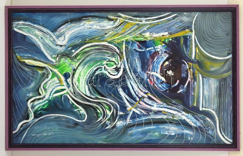 Keszthelyi jelzéssel: Hullámok. Olaj, falemez, keretben, 60×100 cm