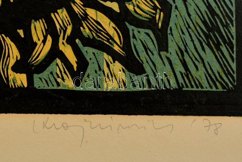 Krajcsirovits Henrik (1929-2007) : Napraforgó. Színes linó, papír, jel...