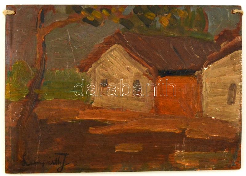 Lampért jelzéssel: Szeged környéki tanyaház. Olaj, falemez, 19×13 cm