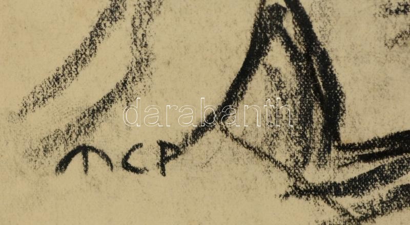 MCP jelzéssel: Férfi portré, szén, papír, paszpartuban, üvegezett fa keretben, 32×24 cm