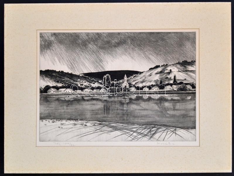 Novák Lajos (1927-1989): Táj, rézkarc, papír, jelzett, számozott (100/82), paszpartuban, 31,5×41,5 cm