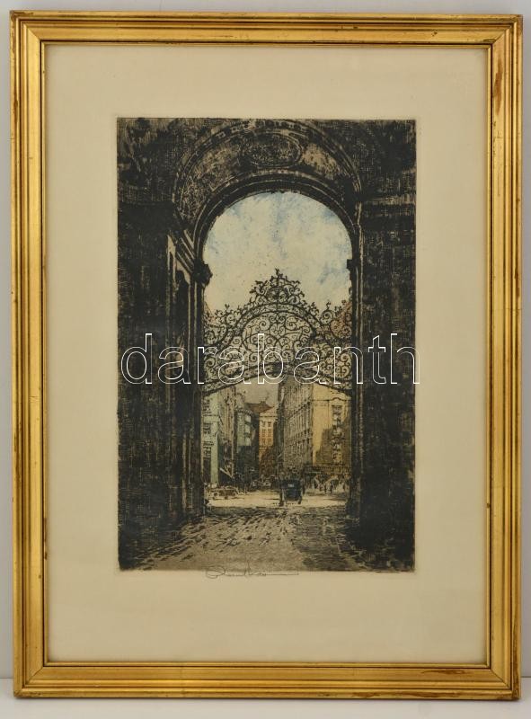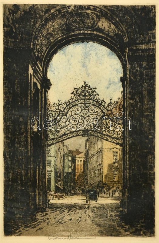 Robert Kasimir (1914-2002): Szent Mihály kapu, Bécs. Színezett rézkarc...