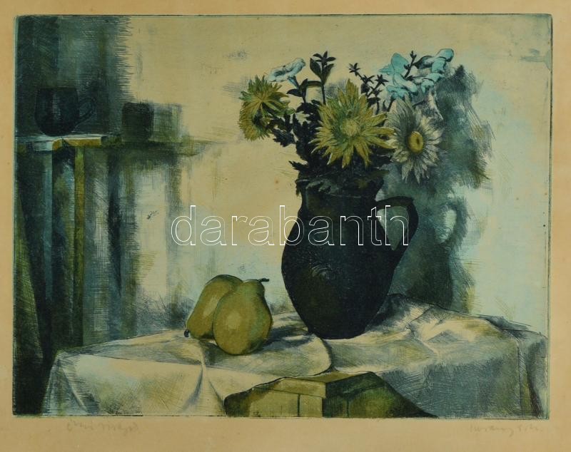 Surányi Nándor (?-): Őszi virágok. Színezett rézkarc, papír, jelzett, ...