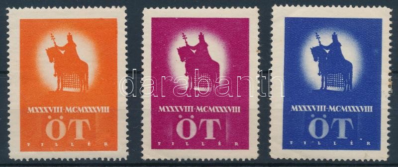 1938 Szent István 3 db klf színű levélzáró bélyeg