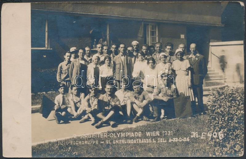 1931 A Bécsi Munkásolimpián részt vevő magyar sportolókról készült cs...
