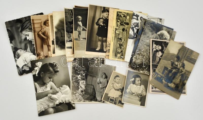 Vegyes gyerekfotó tétel, játszó gyerekkel, 20 db, fotó, fotólap, képeslap vegyesen, 10x15 cm és 8x5 cm közötti méretben.