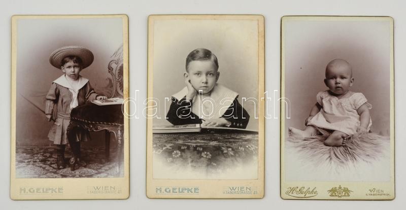 cca 1900-1910 Children portraits, 3 pieces, Wien, Heinrich Gelpke, 6x10 cm.