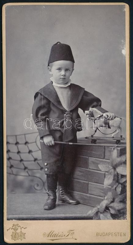 cca 1900 Mai Manó és társa fényképe. Fezes kisgyermek 8x15 cm