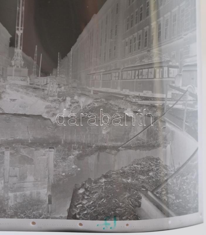 Description: cca 1976 Budapesti villamosok az Üllői út és a Ferenc körút sarkánál, a metró aluljáró építése idején, 3 db szabadon felhasználható, vintage negatív, 6x6 cm