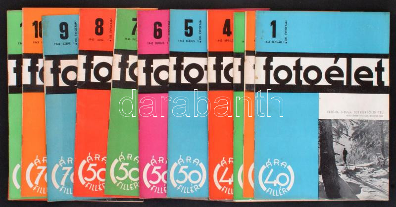 1943 Fotoélet. Fotóművészeti és tudományos szaklap. Szerk. és kiadó: Gyulai Ferenc. (1943. 1-12. sz) Teljes évfolyam. Mind jó állapotban