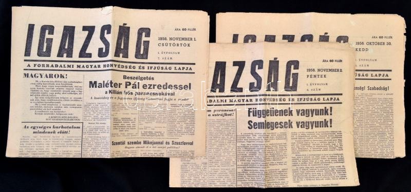 1956 Igazság. A forradalmi Magyar Honvédség és ifjúság lapja, 3 szám. ...