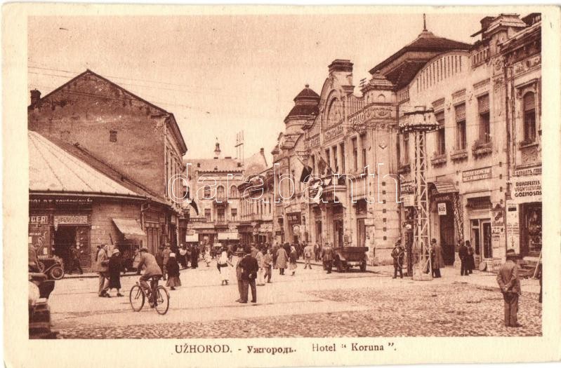 Ungvár, Uzhorod; Hotel Koruna / Korona szálloda, Berkes Béla, Fried Ár...