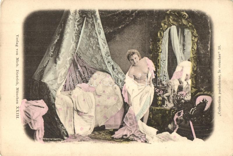 Collection parisienne, le coucher 18. Erotic nude lady, bedtime, Verlag von Mich. Dietrich (EK)