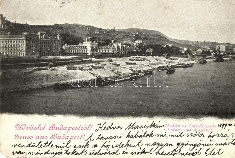 1899 Budapest II. Szent Lukács és Császár fürdő, Schmidt Edgar kiadása...