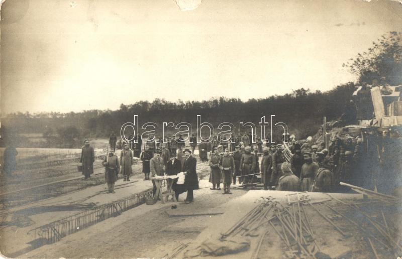 Description: 1914-15 Ostffyasszonyfa, I. világháborús osztrák-magyar hadifogolytábor orosz, román, olasz és francia katonáknak / WWI K.u.K. military camp of POW (prisoners of war), photo (felületi sérülés / surface damage)