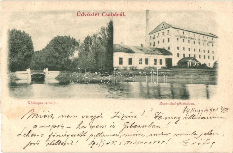Békéscsaba, Csaba; Rosenthal gőzmalom, Kőrös part részlet (vágott / cu...