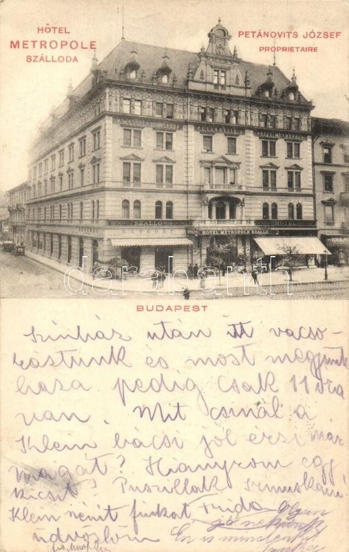 https://www.darabanth.com/en/299-Online-auction/299.0/Postcards/Hungary~500007/Budapest-VII-Kerepesi-Rakoczi-ut-58-Petanovits-Jozsef-Hotel-Metropole-szallodaja-EK~II1602760