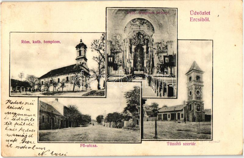 Ercsi, Római katolikus templom, Tűzoltó szertár, Fő utca, kiadja Özv. ...