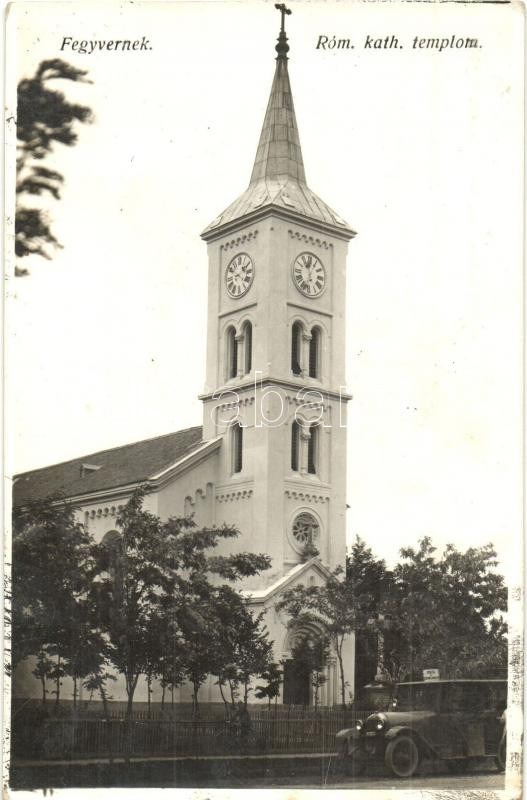 Fegyvernek, Római katolikus templom, Posta és személykocsi automobil. ...