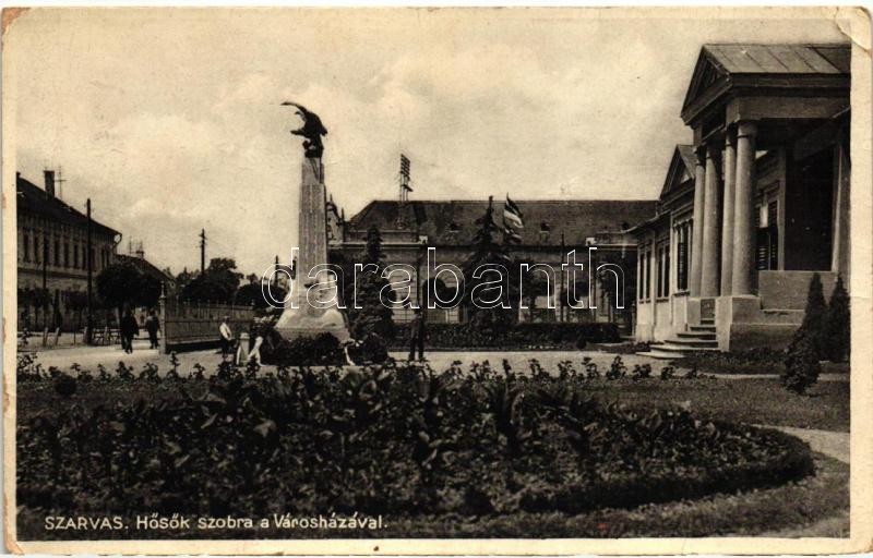 Szarvas, Városháza, Hősök szobra, Novodomszkiy kiadása (ázott / wet damage)