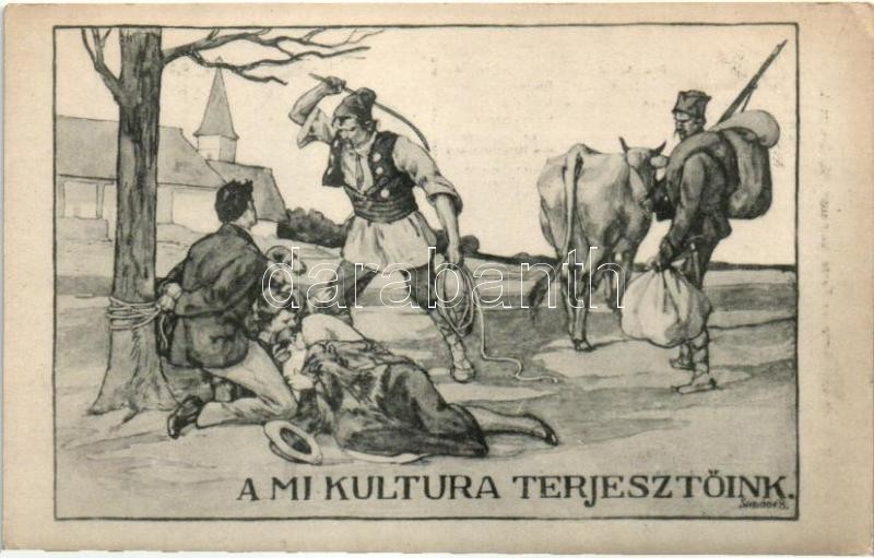 A mi kultúra terjesztőink. Magyarország Területi Épségének Védelmi Ligájának kiadása / Hungarian irredenta, Anti-Romanian propaganda s: Sándor B. (EK)