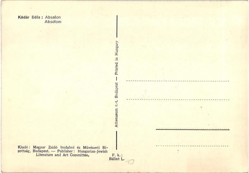 Absalom. A Magyar Zsidó Irodalmi és Művészeti Bizottság kiadása / Abso... https://www.darabanth.com/en/299-Online-auction/299.0/Postcards/Judaica~500075/Absalom-A-Magyar-Zsido-Irodalmi-es-Muveszeti-Bizottsag-kiadasa-Absolom-Published-by-the-Hu~II1604055
