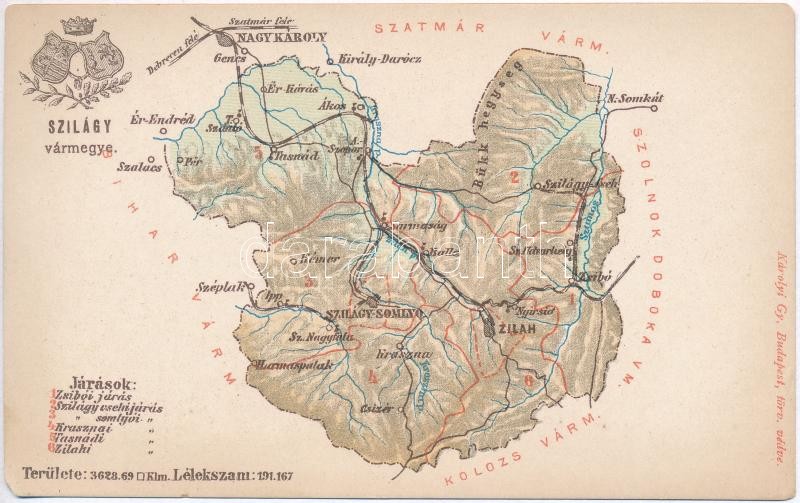 Szilágy vármegye térképe; kiadja Károlyi Gy. / Map of Szilágy county