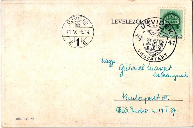 Magyar Királyi Honvéd Térképészeti Intézet / Hungarian Institute of cartography, coat of arms + 1941 Újvidék visszatért So. Stpl. (EK)