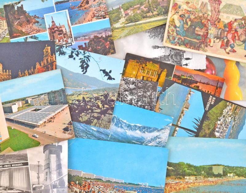 Description: Kb. 700 db MODERN (főként 1950-1980 közötti) magyar és külföldi városképes és üdvözlő, fekete-fehér és színes lap vegyesen / Cca. 700 MODERN Hungarian and European town-view and greeting postcards, mixed themes