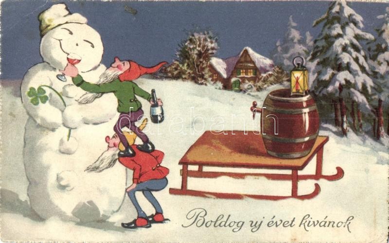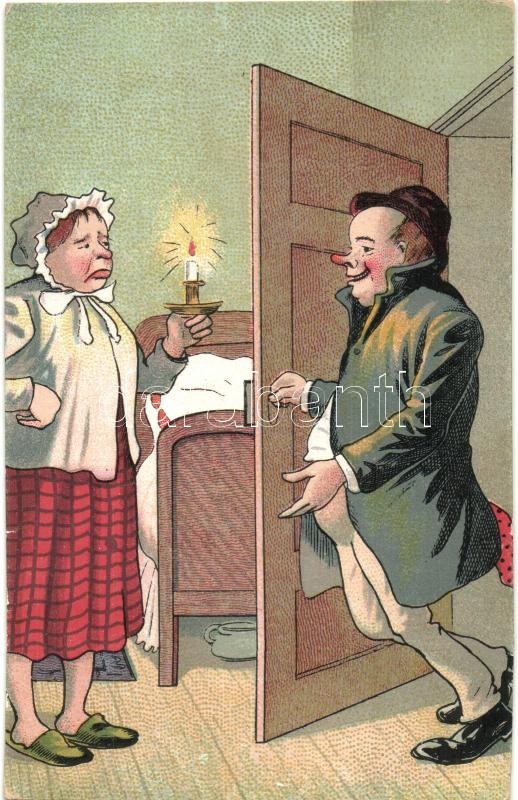 4 db régi humoros grafikai motívumlap / 4 pre-1945 humorous graphic motive cards, litho