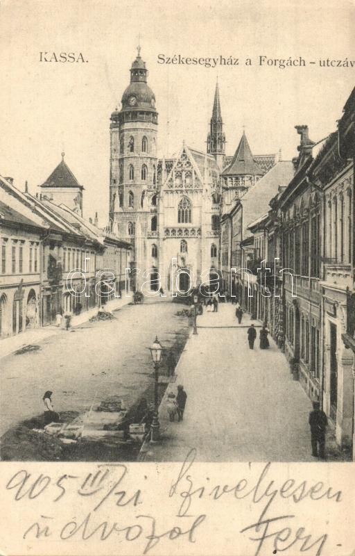 Kassa, Kosice; Forgách utca, Székesegyház, útépítés, László Béla kiadá...